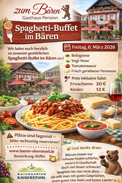Wir laden euch herzlich zu unserem gemütlichen Spaghetti-Buffet im Bären ein!